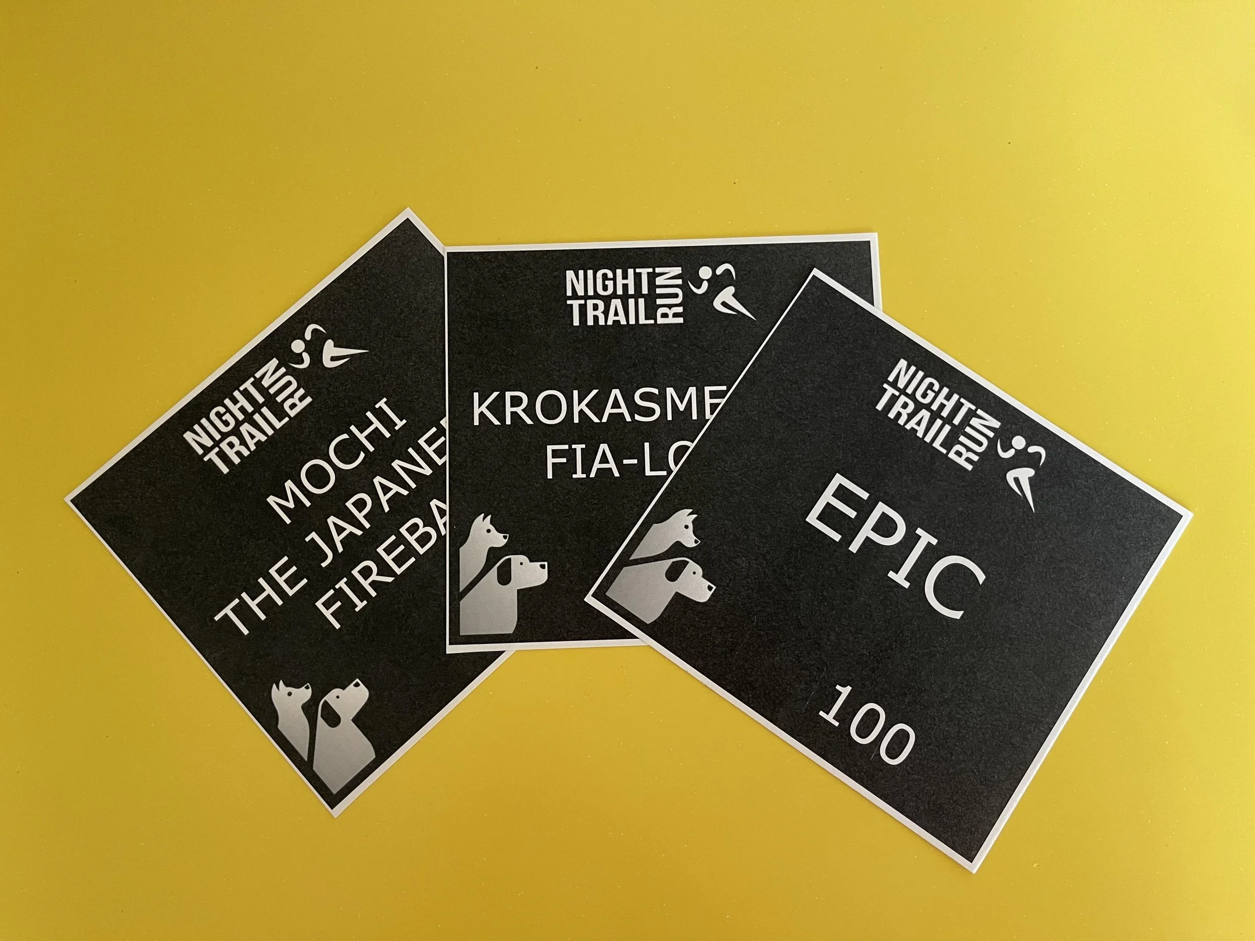 5 km hund och 10 km hund samt 30 km har vanliga nummerlappar som delas ut vid starten